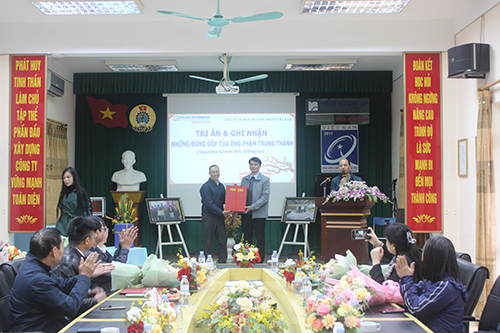Cùng với đó, Công ty tổ chức Tri ân và ghi nhận những đóng góp của ông Phạm Trung Thành trên cương vị Giám đốc từ năm 2015 đến nay. Trong suốt chặng đường công tác, ông đã để lại dấu ấn đậm nét về tinh thần trách nhiệm, sự tận tụy và lòng nhiệt huyết, đóng góp quan trọng từ công sức và trí tuệ cho Công ty từng bước trưởng thành và phát triển. Những chia sẻ chân thành, sự dẫn dắt tận tụy và tinh thần trách nhiệm của ông đã trở thành nguồn động viên lớn lao đối với tập thể CBCNV Công ty. Những đóng góp của ông đã góp phần xây dựng công ty vững mạnh, ngày một phát triển, hỗ trợ đắc lực cho hoạt động quản trị, điều hành của Công ty suốt nhiều năm qua.